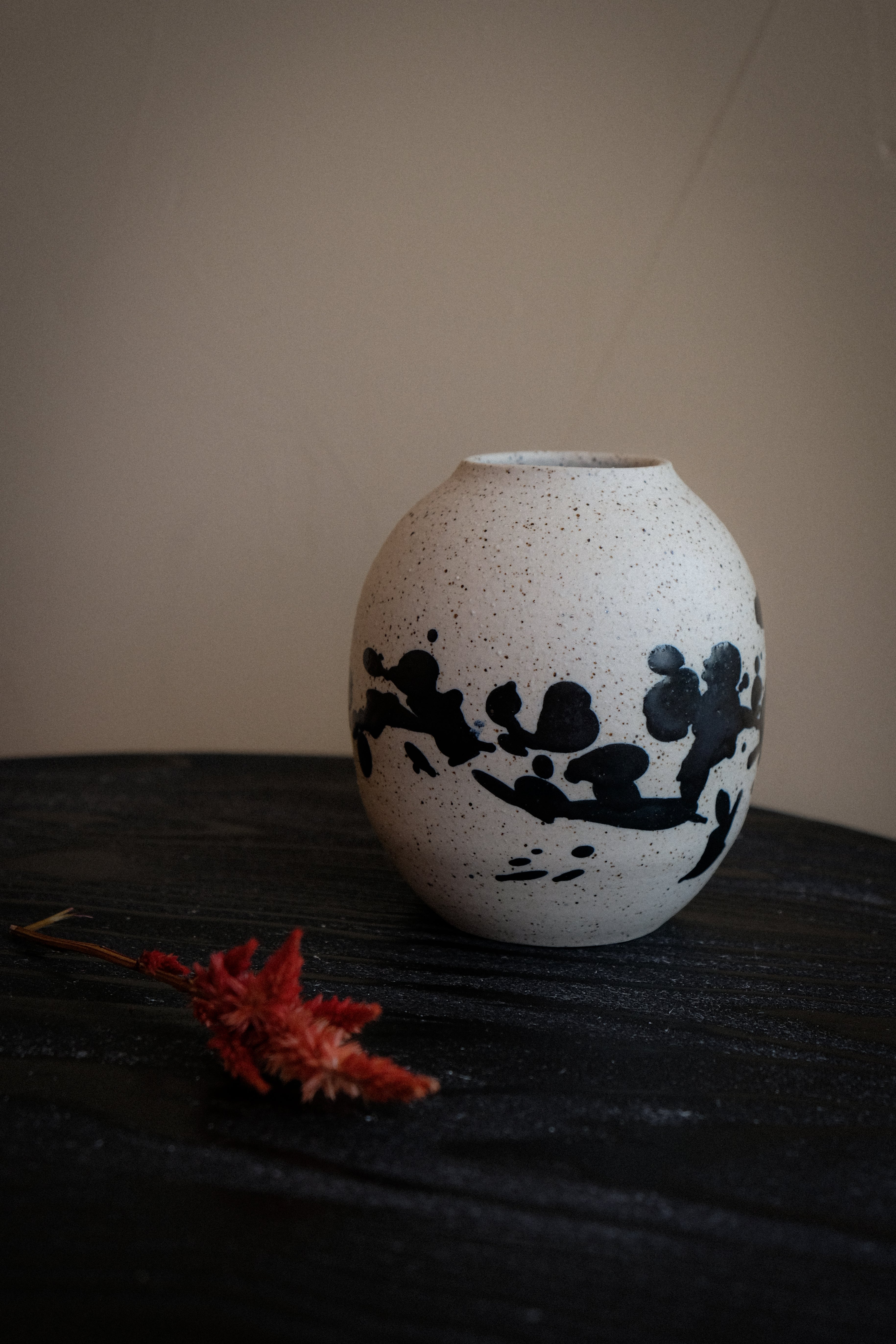 This handmade vase would look perfect on your mantle, coffee table or open kitchen shelving. It is mostly unglazed and therefore more suitable for dried flowers or none at all.